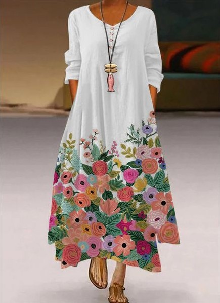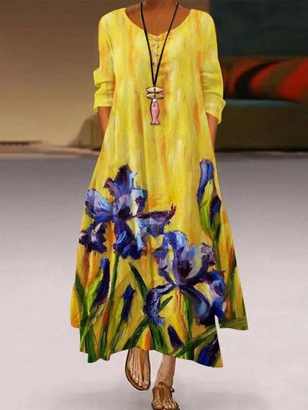 Women's New Pattern Print Polyester Long Sleeve Dress